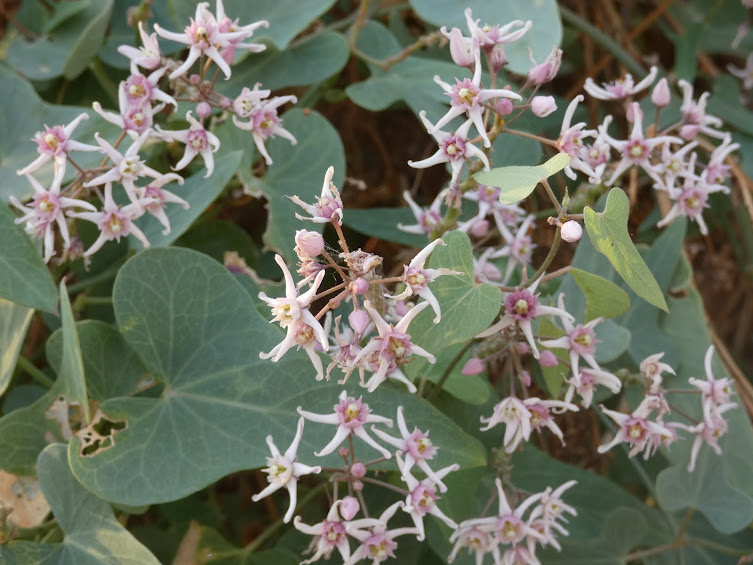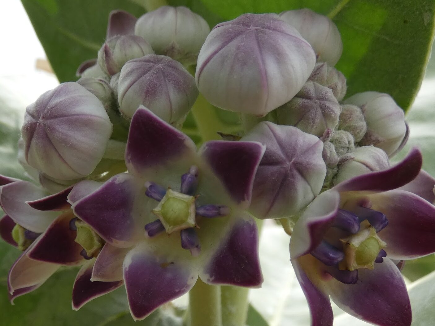 לפרח סימטריה מחומשת בכל חלקיו: 5 עלי גביע, 5 עלי כותרת בשרניים וגדולים המסודרים בצורת כוכב. העטרה גם כן מורכבת מ-5 יחידות. בתוך המבנה המרכזי של הפרח נמצאים 5 חריצי הצצה. כדי שהאבקה תתרחש, רגלו של החרק חייבת להחליק בדיוק לתוך אחד מחמשת החריצים הללו, שם היא ננעלת על שקיקי האבקה. החלוקה לחמש יחידות מאפשרת לצמח להציב "מלכודות" האבקה מכל כיוון שבו ינחת החרק. המבנה המחומש של העטרה יוצר תעלות צוף צרות ומדויקות, המבטיחות שרק מאביקים חזקים ומיומנים מספיק יוכלו לגשת אל הפרס, ובדרך זו "לשלם" בנשיאת האבקיות אל הפרח הבא.